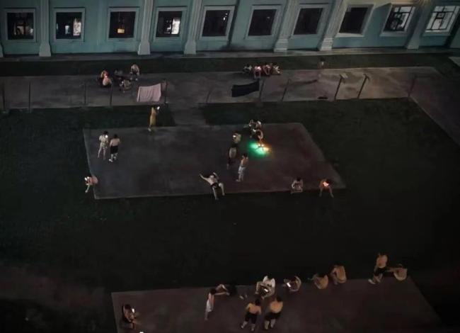 视频中可以看到,多名穿着短袖短裤的男生搬着凳子坐在走廊处纳凉,还有学生在自动货柜机上购买冰镇饮料。而在宿舍楼的楼下空地和楼顶天台,不少男生只穿着短裤,赤膊躺在凉席上打地铺。一名男生提到,最近天气较热,宿舍内没有安装空调和风扇,由于宿舍晚上太闷热,很多男生选择在宿舍楼的走廊和楼下空地乘凉,也有人去天台吹风。女生们则将手脚放在水盆中降温。