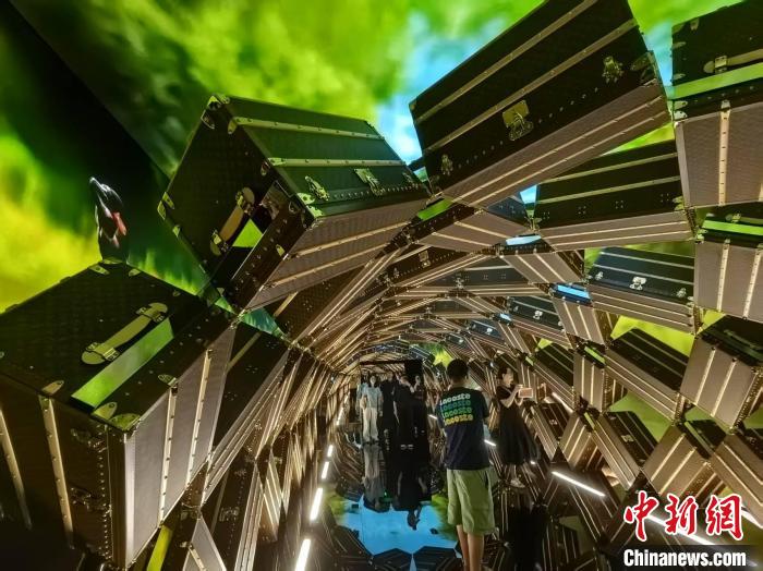 “路易号”内《非凡之旅》展览的标志性装置“箱筑奇景”如一条梦幻的时空隧道。(中新网记者 陈静摄)