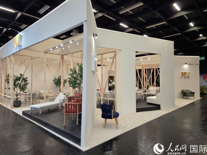 天然的木色格栅间错落有致,高级灰色调的户外布艺沙发简洁典雅,走进美雅鑫家具展台宛如置身大自然。据公司总经理熊锋介绍,在本届展会上,公司重点展示了室内外两用的采用无氟环保面料的新款家具。近年来,美雅鑫积极从为国外厂商代工到向自有品牌与原创设计转型,目前已与十余位中外设计师建立稳定合作,持续推动产品设计绿色环保与技术创新,并努力在国际市场上打造更具影响力和认知度的中国品牌。目前出口网络已覆盖欧洲、美洲、中东和东南亚等多个地区。随着中国制造在产品质量和外观设计上不断发力,越来越多的中国企业走上国际舞台与外国同行同台竞技。