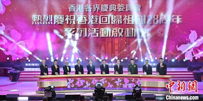 中新社香港6月30日电 (记者 戴小橦)由香港各界庆典委员会主办的“热烈庆祝香港回归祖国28周年系列活动”启动礼及“星耀紫荆庆回归”文艺晚会30日在位于香港红磡的香港体育馆(即“红馆”)举行。