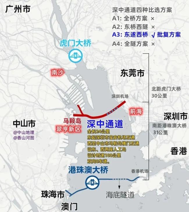 2024年6月30日,深中通道通车,中山市马鞍岛成为粤港澳大湾区的焦点。作为“临深三剑客”之一,中山楼市曾因深中通道概念而火热,并在2021年前后达到高点。在深中通道通车前,不少中山地产中介常以“通车进入倒计时”“红利窗口期即将关闭”为由催促客户成交。“15分钟通勤,1/8前海价”一度成为部分开发商的宣传语。
