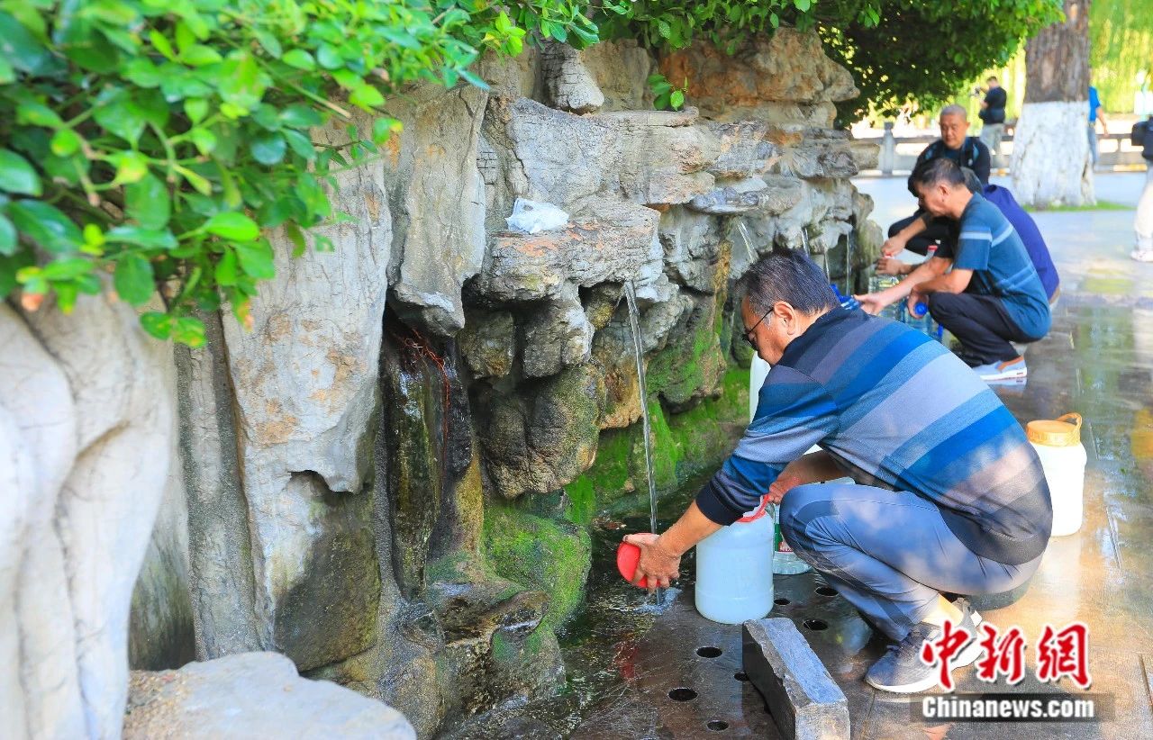 市民在济南黑虎泉畔打泉水。山东省文化和旅游厅供图。