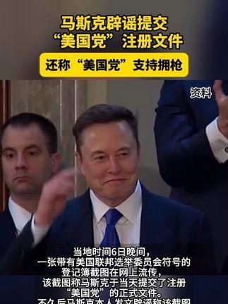 马斯克辟谣提交美国党注册文件 还称“美国党”支持拥枪