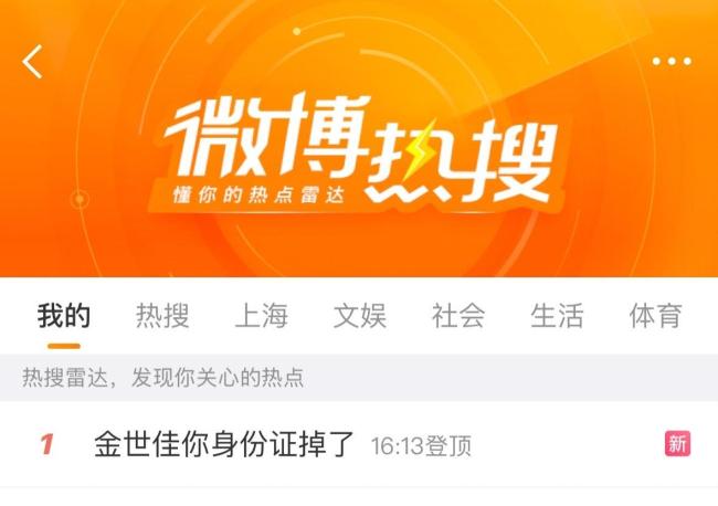 7月6日,关于“金世佳你身份证掉了”的话题冲上热搜。有网友称在上海市徐汇区一公园捡到了演员金世佳的身份证。金世佳因出演《爱情公寓》中的陆展博一角而受到广泛关注。