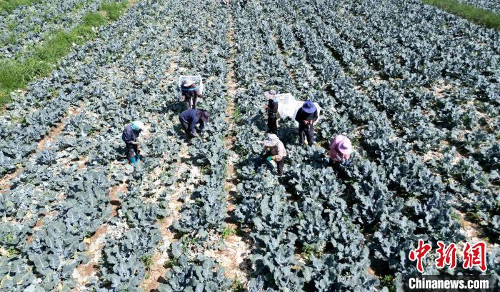 中新网兰州7月8日电 (盘小美 刘正)“这里早晚温差大,很适合种植西兰花。今年我们从山东引进西兰花种苗,连片种植1000亩,并配套水肥一体化设施。”7月初,甘肃崇峰农民种植专业合作社负责人何海峰带领工人收割、装运成熟的西兰花,据他介绍,首茬亩产3000斤左右,采收结束后将进行第二茬种植,通过复种实现“一地双收”。