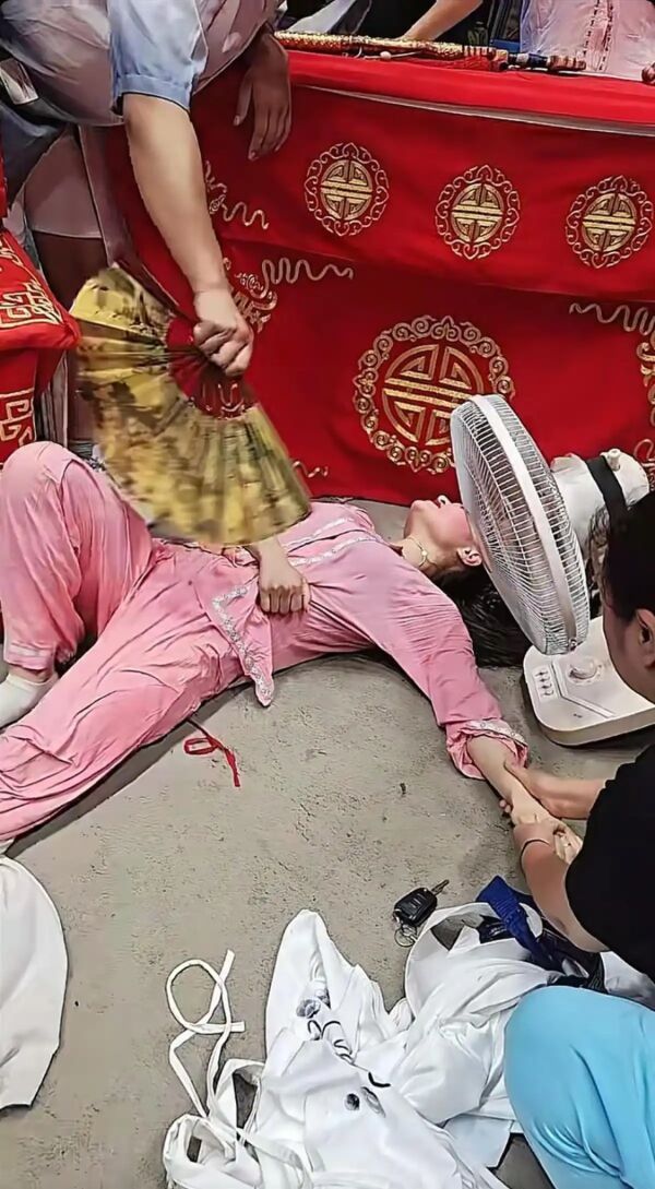 当天的气温高达40度,再加上铁皮房内的温度可能达到50度,这位演员在演出时已经有些中暑,但她还是坚持到了谢幕。幸运的是,现场人员迅速采取了降温措施,目前她的身体状况已经恢复。