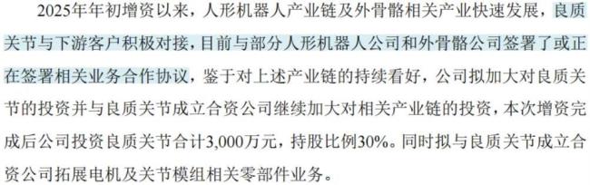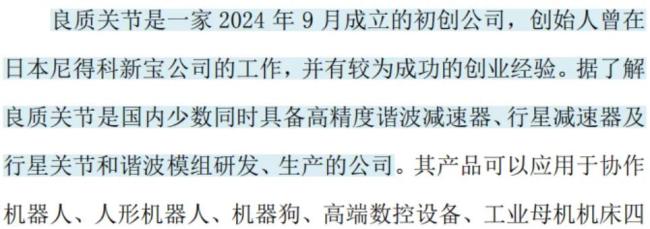 良质关节成立于2024年9月,主要从事谐波减速器、行星减速器及关节模组的研产销。目前良质关节与部分人形机器人公司和外骨骼公司正在推进合作,在此背景下,公司加大了对良质关节的投资力度。