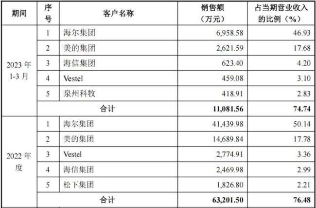 受下游格局影响,公司客户集中度较高,海尔集团、美的集团分别为公司主要客户,两者合计销售占比超60%。