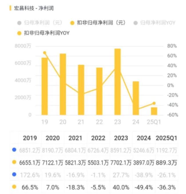 但整体增收不增利,2024年公司扣非归母净利润为3897万元,较2019年接近腰斩。