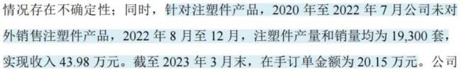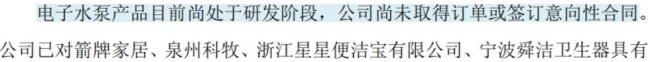 不过,公司在此之前较少对外销售注塑件产品,且在手订单较少。而电子水泵产品还处于研发阶段,公司尚未取得订单或签订意向性合同。