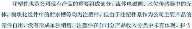 公司表示,注塑件作为公司原有产品的零件自用,没有形成单独销售,所以也没有在收入分类中体现。
