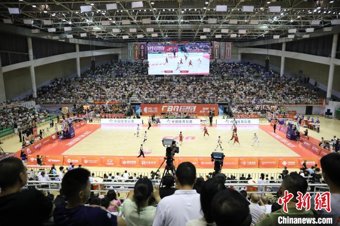7月9日晚,株洲“厂BA”明星队对战华侨大学男篮。图为比赛开球。周阳 摄
