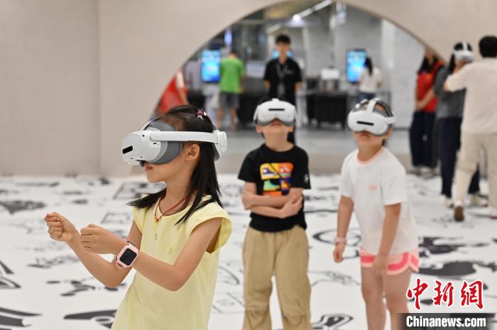 7月10日,位于广东省广州市的广州图书馆未来阅读馆正式开放,该馆通过虚拟现实(VR)技术,为读者提供沉浸式交互阅读空间。图为未来阅读馆吸引小朋友体验。中新社记者 陈楚红 摄