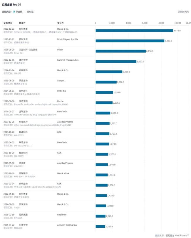 ADC和双抗/多抗License-out交易TOP20