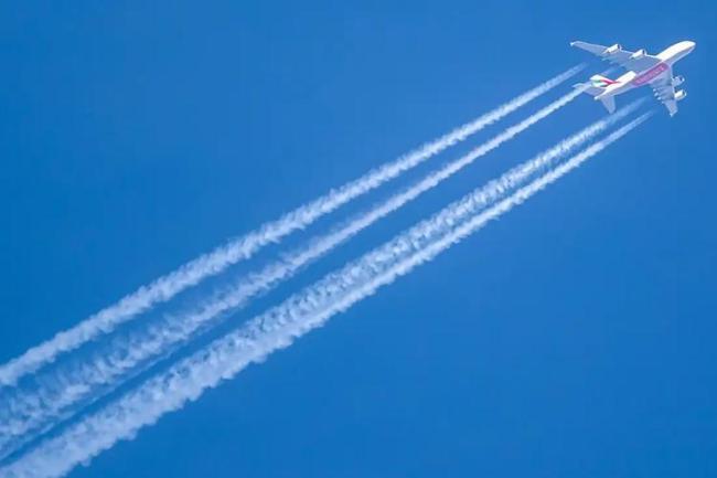 航迹云由飞机尾气中的水蒸气在高空遇冷凝结而成。飞机或飞行器在高空飞行时排放的尾气中包含大量因燃烧产生的水蒸气。当这些水蒸气遇到冷空气时,便会凝结成云。此外,飞机飞行时,机身会引发气压扰动,翼尖会产生小涡旋,导致空气压缩和膨胀,进而引发温度变化和水汽凝结,最终形成航迹云。