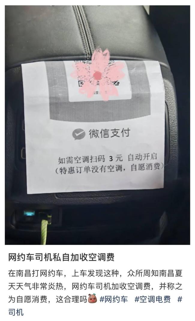 在高温天气下,网约车是否有义务为乘客开启空调成为争议焦点。6月23日,有网友发帖称,在南昌乘坐某平台“特惠快车”时,遇到司机要求扫码支付3元才能开启空调的情况。车内贴有告示,明确写道:“如需空调扫码3元,自动开启”,并注明“特惠订单不含空调,自愿消费”。该网友表示,南昌夏季炎热难耐,司机此举极不合理,引发大量网友共鸣。