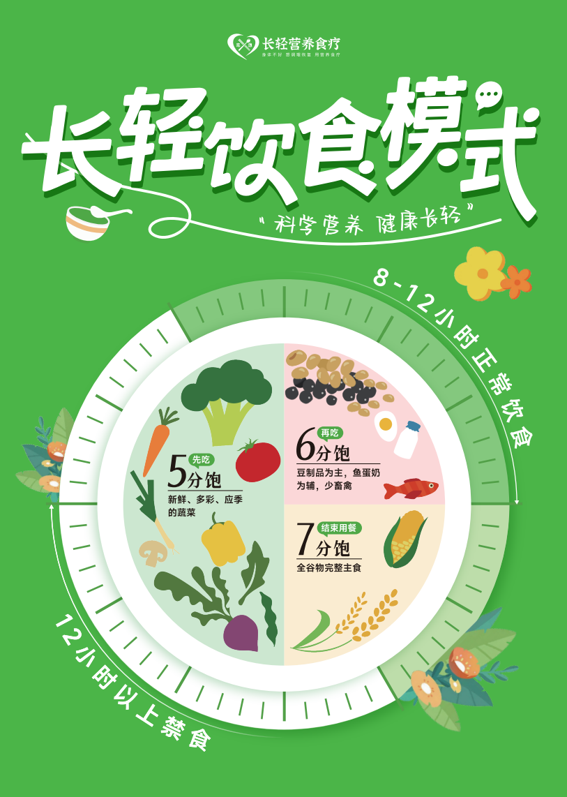 长轻饮食模式是一套融合了食谱、时间与顺序三大维度的组合拳式健康管理工具。其在设计上参考了《中国居民膳食指南(2022)》和39种国际认证的健康饮食模式,如地中海饮食、DASH饮食、TLC饮食等,通过本土化改造,剔除了不符合中国饮食习惯的内容,保留了最易执行的“两个多吃,两个少吃”的黄金法则——即多吃保留天然营养的全蔬食与高营养密度食物,少吃动物性食物与精深加工食品。