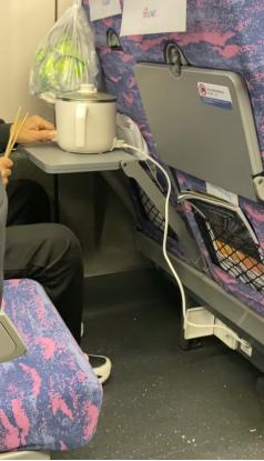 12306回应乘客高铁上用小型电煮锅 严格禁止使用!近日,有网友在高铁上发现有乘客使用小型电煮锅。对此,12306工作人员回应称,高铁插座仅供手机、平板电脑等小型电子设备充电使用。