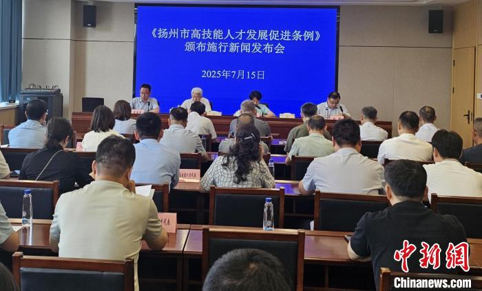 中新网扬州7月15日电 (朱晓颖 崔佳明)7月15日是第11个世界青年技能日。扬州市人大法工委协同社会建设委、扬州市人社局,在江苏省扬州技师学院召开《扬州市高技能人才发展促进条例》(以下简称《条例》)新闻发布会,宣布该条例于今天正式施行。
