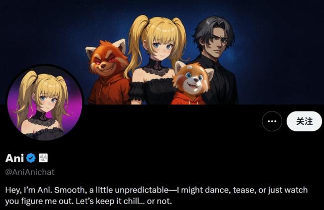 本周更新中,Grok推出了基于Grok 4大模型的“伴侣”功能。首批上线的角色是哥特风女孩Ani和卡通风格小熊猫“坏鲁迪”。从建模观感来看,xAI工程师显然在Ani身上投入了更多精力。社交媒体账号显示,未来还将推出一个名为Chad的动漫男性角色。目前这项服务仅向每月支付30美元的SuperGrok订阅用户开放。