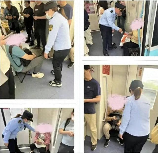 上海地铁工作人员集中宣传劝导“板凳族”图源/上海地铁官方微博