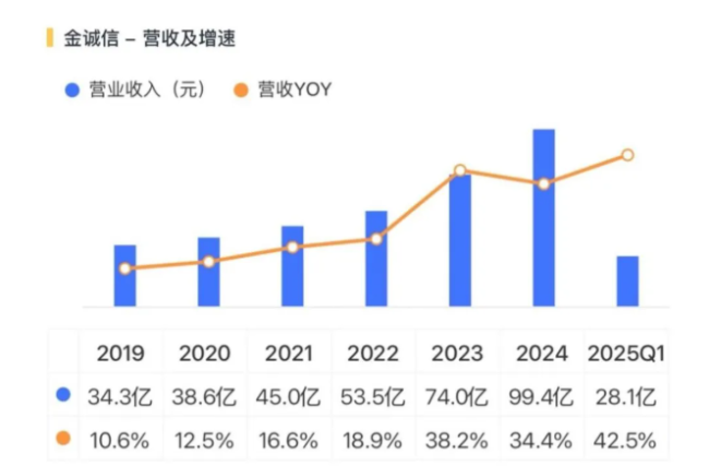 2024年,公司营收99.4亿元,同比增长34.4%。今年一季度,营收28.1亿元,同比增长42.5%。其增长的动力主要来自于资源开发板块的强劲增长。