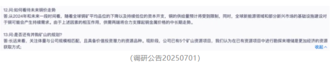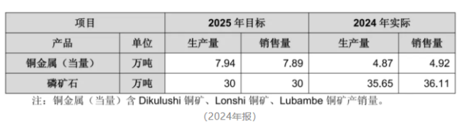 从经营目标来看,2025年公司资源开发板块业绩增量将来自于矿产铜,铜金属的目标产销量较2024年有大幅提升。
