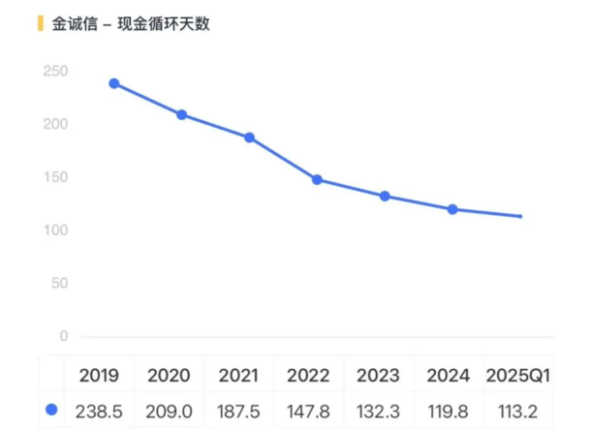 现金循环天数逐年改善。