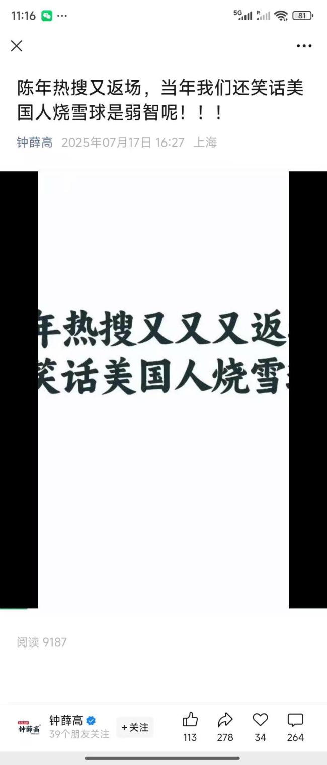 在公号视频的评论区,钟薛高官方回复称,“每个月断断续续有生产的”“现在人太少了,都身兼数职死扛”。对于频上热搜的情况,他们表示,“年年夏天被热搜,那谁谁,我都这样了,算了吧,年年买热搜找人挺费钱,虽然你财大气粗”。