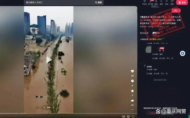 近期,强降水导致重庆多地防汛形势严峻,成为舆论关注的焦点。个别网民为博眼球,编造或夸大灾情,引发公众焦虑恐慌,干扰正常社会秩序。为维护清朗网络空间,确保防汛工作顺利开展,重庆警方持续加强汛情网络谣言打击整治力度,现公布三起典型案例。