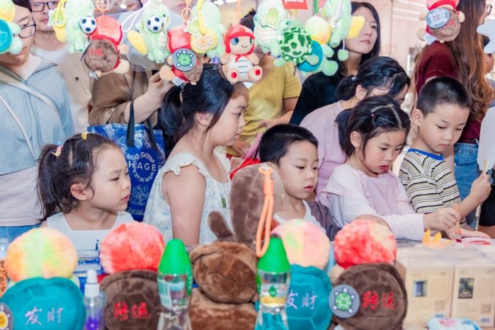 马庄香包赶制的常州和徐州定制足球香包,集十三城市名称,玲珑可爱。龟山景区推出的徐州、常州足球玩偶表情憨萌。沛县文旅展位的漆扇体验前,一把把写着“沛县:千古龙飞地,一代帝王乡”的扇子瞬间变得五彩斑斓。
