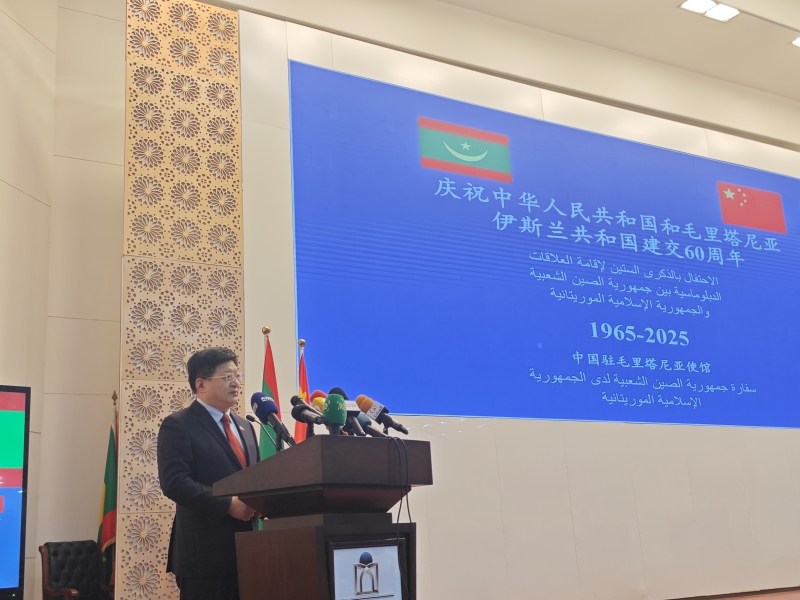 人民网努瓦克肖特18日电 (记者管克江、邹松)7月18日,驻毛里塔尼亚使馆举行庆祝中毛建交60周年招待会。中国驻毛里塔尼亚大使唐中东,毛总统代表、外交、非洲合作与海外侨民部长马尔祖克致辞。毛国防、退休军人与烈士子女事务部长西迪、装备与运输部长艾勒费勒凯、数字化转型与行政现代化部长艾特费格、卫生部长韦迪赫、粮食安全专员卡特里等毛政府官员、公正党主席穆罕默德等政党领导人、国民议会议员、地方政府官员、友华人士、外国驻毛使节、在毛中资机构和华侨代表等约300人出席活动。