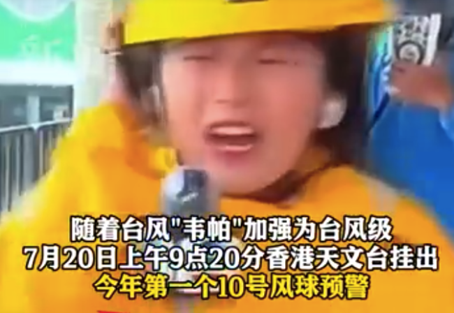 台风“韦帕”来袭 记者在香港维多利亚港报道时被风吹到“模糊”