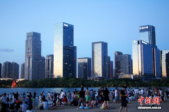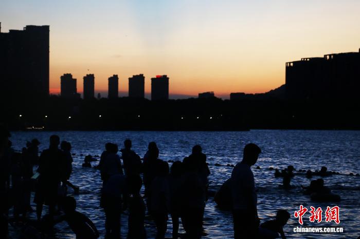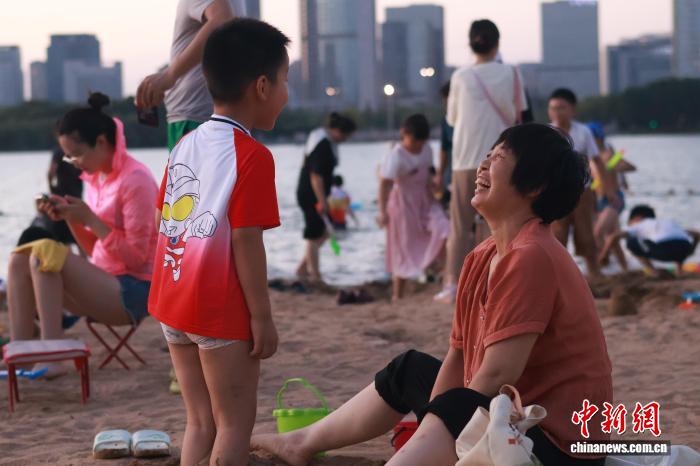 7月20日,安徽合肥市民在天鹅湖畔纳凉消暑。连日来,合肥持续高温。每到傍晚,天鹅湖沙滩、安全水域成为当地市民纳凉避暑的首选。张强 摄