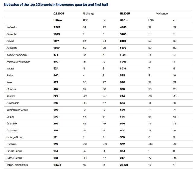 作为一家纯粹的创新药物公司,诺华明确专注于心血管-肾脏-代谢、免疫学、神经科学和肿瘤学四大核心治疗领域。具体来看,在上半年,肿瘤学管线为诺华贡献了最多收入,高达81.99亿美元,同比增长22%。