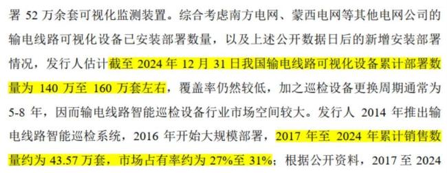 要知道,电网建设是场“马拉松”,招股书里提到的高达130亿元的输电线路智能巡检市场规模,也是多年积累的总量,并非单年度能“瓜分”的蛋糕。