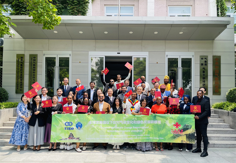 人民网北京7月22日电 (记者刘文璋)由商务部主办、中国气象局气象干部培训学院(国合中心)承办的“发展中国家气象水文行政官员高级研修班”“全球发展倡议下应对气候变化和绿色发展研修班”联合结业仪式日前在京举行。