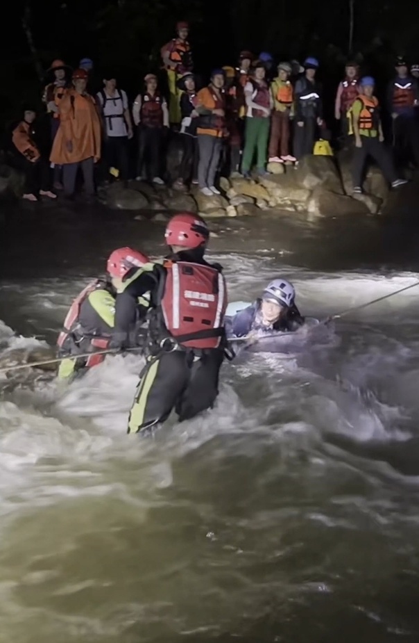 消防连夜救援24名被困驴友 强降雨致夜困深山