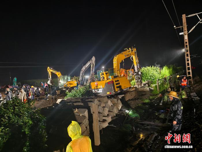 三天两夜,抢险人员顶风冒雨,鏖战在267号桥,与暴雨抢时间、拼速度,累计完成路基边坡加固150米,实施埋桩打桩70余根,清理河道淤泥300米,开展单机压道4趟次,下放石笼15个,调用应急车辆30辆,投入各类抢险设备45台。通过多维度、全链条抢险措施,在京包铁路267号桥周边构建起全方位防洪抗汛体系。