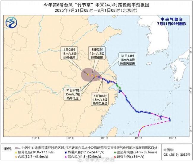 据南京市气象台消息,台风“竹节草”预计于7月31日下午到夜间穿过南京市中南部,进入安徽东部。目前全市阴有阵雨或雷雨,降水主要集中在北部地区,并伴有陆上6~8级、水面7~9级大风。