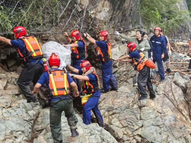 这处绝壁是通往山下的必经之路,如何安全通过成为关键。时间回到7月26日深夜,海淀消防增援怀柔二分队前往琉璃庙镇及周边村庄进行救援。27日下午,蒋寒阳和队友历经艰险到达鱼水洞村,成功转移了30多名被困群众。当晚,这些群众被暂时安置在黄土梁村,计划第二天继续转移。然而,黄土梁村距离山下还有十多公里,且道路有多处塌方,其中一段公路被洪水冲毁成绝壁,下方是湍急的河流。