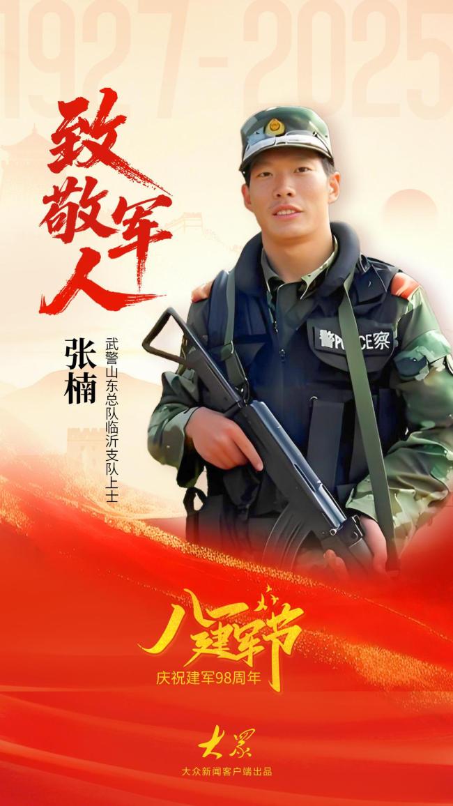 张楠曾说:“为祖国和人民争取荣誉是我一生最大的光荣。”1987年12月生于河北沧州的张楠于2004年入伍。2015年7月26日,中国驻索马里使馆遭到自杀式炸弹袭击,正在执行任务的张楠英勇牺牲,将青春永远定格在了28岁。“如果祖国需要,我就是一颗上膛的子弹,随时准备着。”这是张楠生前的誓言。在武警山东总队,有一支编号“08569”的步枪,其主人是被誉为“1号狙击手”的张楠。入伍11年间,张楠参加各类急难险重任务10余次,抓捕犯罪嫌疑人10多名,救助遇险群众40余人。他曾被总队评为“十大训练标兵”“十佳优秀士官”。2014年9月,上级选拔赴索马里执行使馆警卫任务人员,张楠脱颖而出。张楠牺牲后,武警山东总队批准他为烈士,武警部队追授张楠“中国武警忠诚卫士”奖章。2016年9月,中宣部授予张楠“时代楷模”荣誉称号。2019年9月15日,张楠当选“最美奋斗者”。