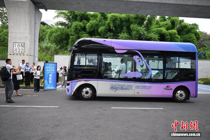 图为媒体记者体验成都首条自动驾驶公交线路。中新社记者 张浪 摄