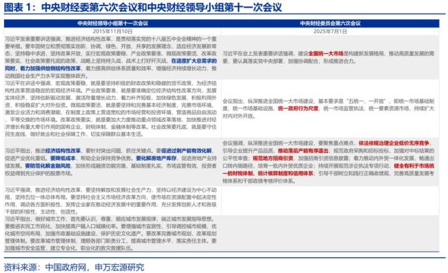 本轮“反内卷”的政策更聚焦于地方政府行为规范。相较于2015年中央财经领导小组第十一次会议,2025年中央财经委会议特别强调对地方政府行为的规范,提出“规范地方招商引资”等具体举措。会议将“五统一、一破除”调整为“五统一、一开放”,核心变化体现在地方政府行为规范尺度与对外开放维度。