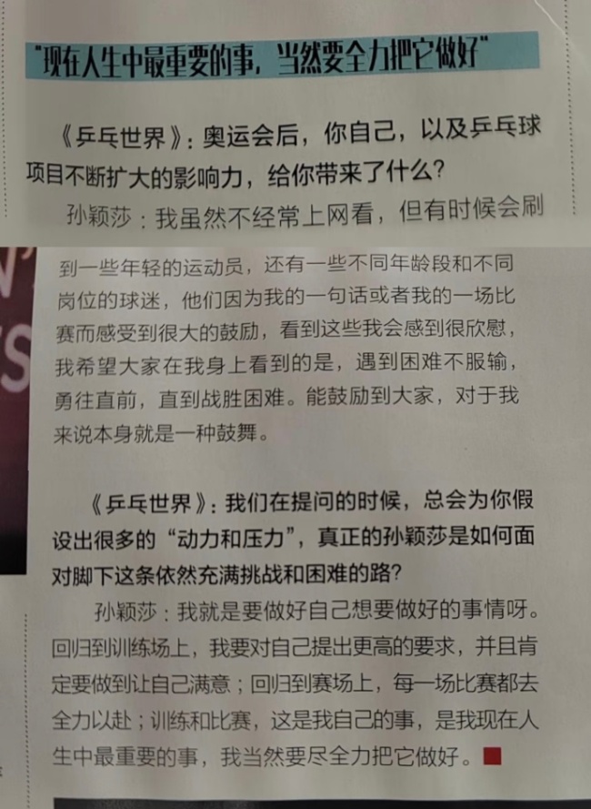 《乒乓世界》:我们在提问的时候,总会为你假设出很多的“动力和压力”,真正的孙颖莎是如何面对脚下这条依然充满挑战和困难的路?
