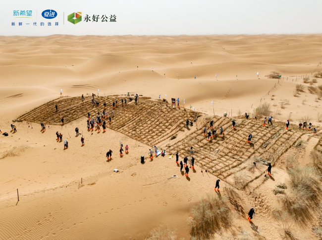 2024年4月22日,在第55个世界地球日到来之际,新希望乳业再度携手中国绿化基金会,带领公益伙伴前往阿拉善腾格里沙漠,开展“守护生态贺兰山”公益植树活动,并连续第二年向中国绿化基金会捐赠20万元生态基金,用于沙漠锁边林项目地树苗的种植与养护。两年间,新乳业公益伙伴林中已有4万棵树苗发芽生长,组成了贺兰山脚下“绿色长城”的一部分,在阻止沙漠东移的同时,能有效守护贺兰山自然生态。新希望乳业将绿色环保延续成为长期的事业,积极推进产业链绿色转型升级,推动形成人与自然和谐共生新格局。