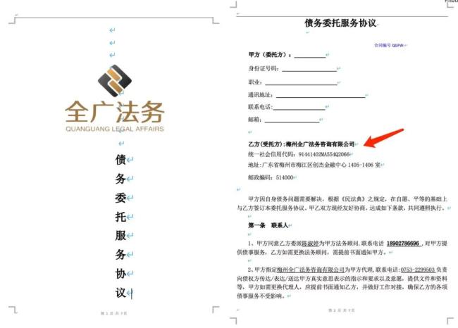 简单沟通后,对方立即发来一份《债务委托服务协议》,要求客户签署。协议中不仅包含双方个人信息,还详细列出了所谓的“债务化解服务”内容。