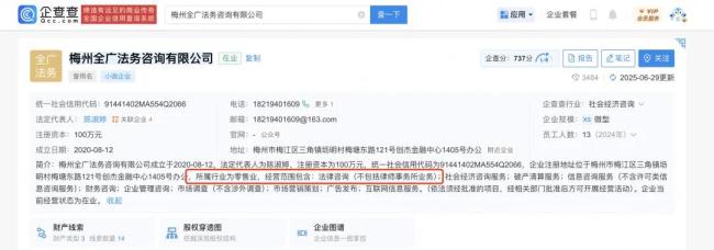 例如,蓝鲸记者咨询的这家机构全名为梅州全广法务咨询有限公司。