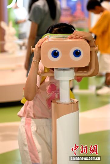 图为小朋友体验光影空间。中新社记者 吕明 摄