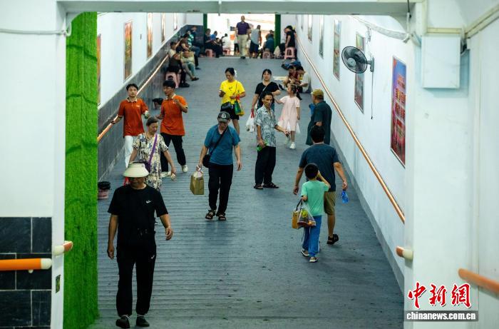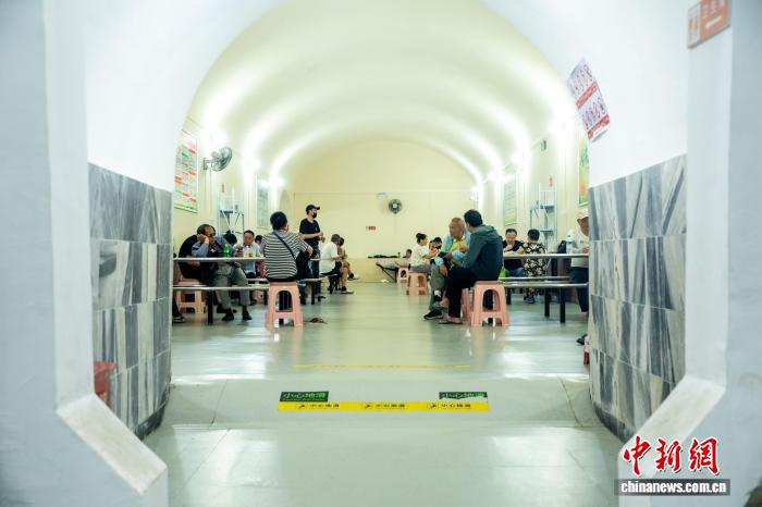 8月5日,市民在武昌蛇山人防工程纳凉点内纳凉。中新社记者 张畅 摄